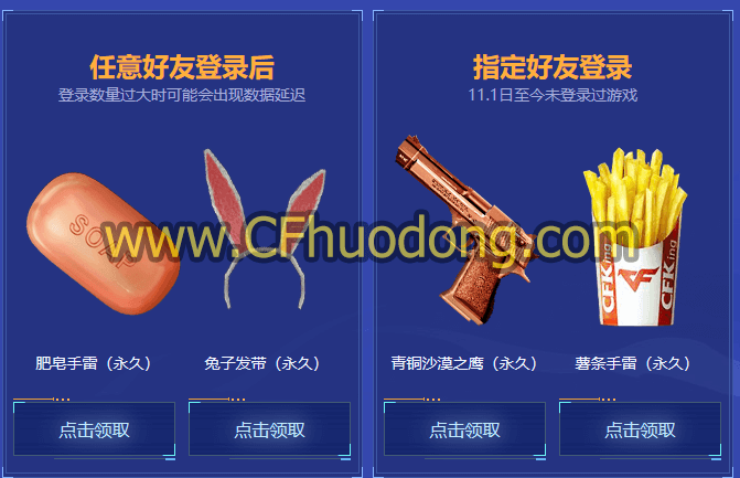 邀请好友,领取青铜沙漠之鹰(永久)、薯条手雷(永久):