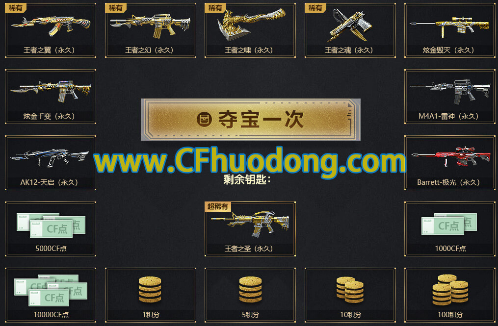 最新CF抽奖活动,王者夺宝。